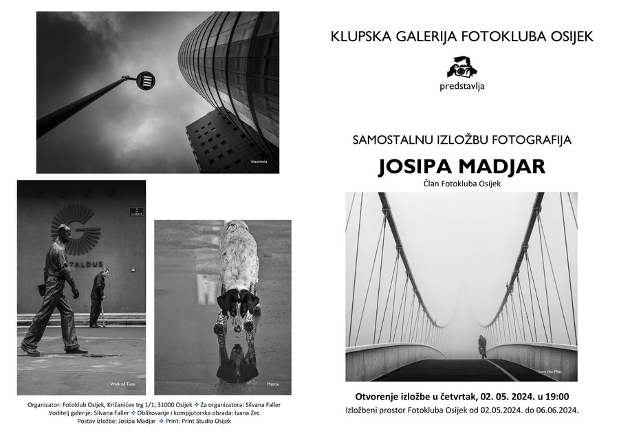 Fotoklub Osijek predstavlja samostalnu izložbu Josipa Madjar.