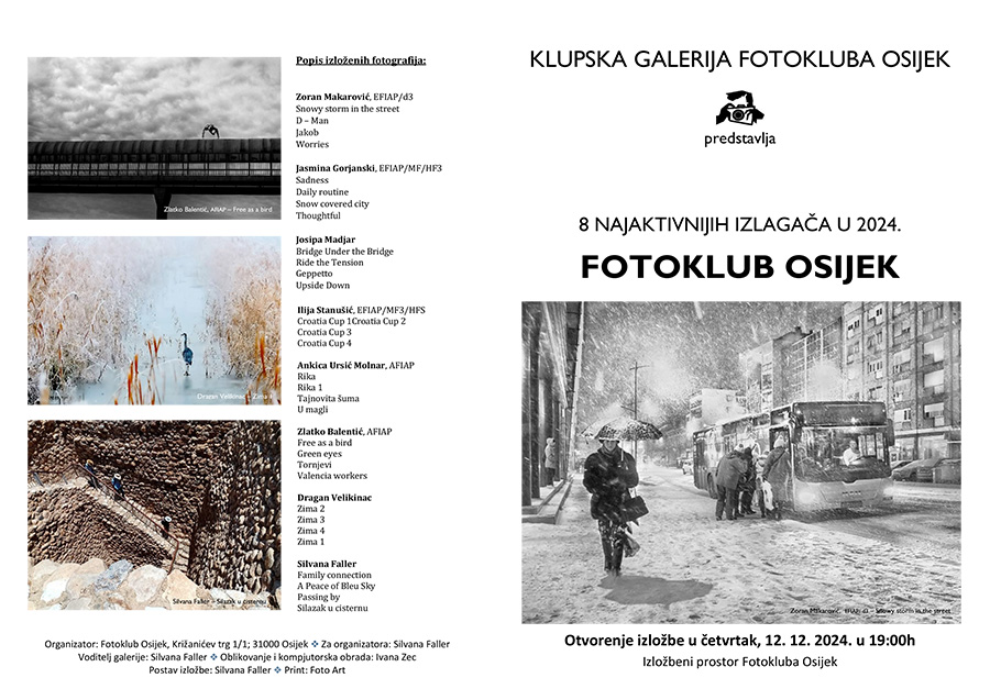 Klupska fotogalerija fotokluba Osijek predstavlja izložbu 8 najuspješnijih izlagača u 2024.godini